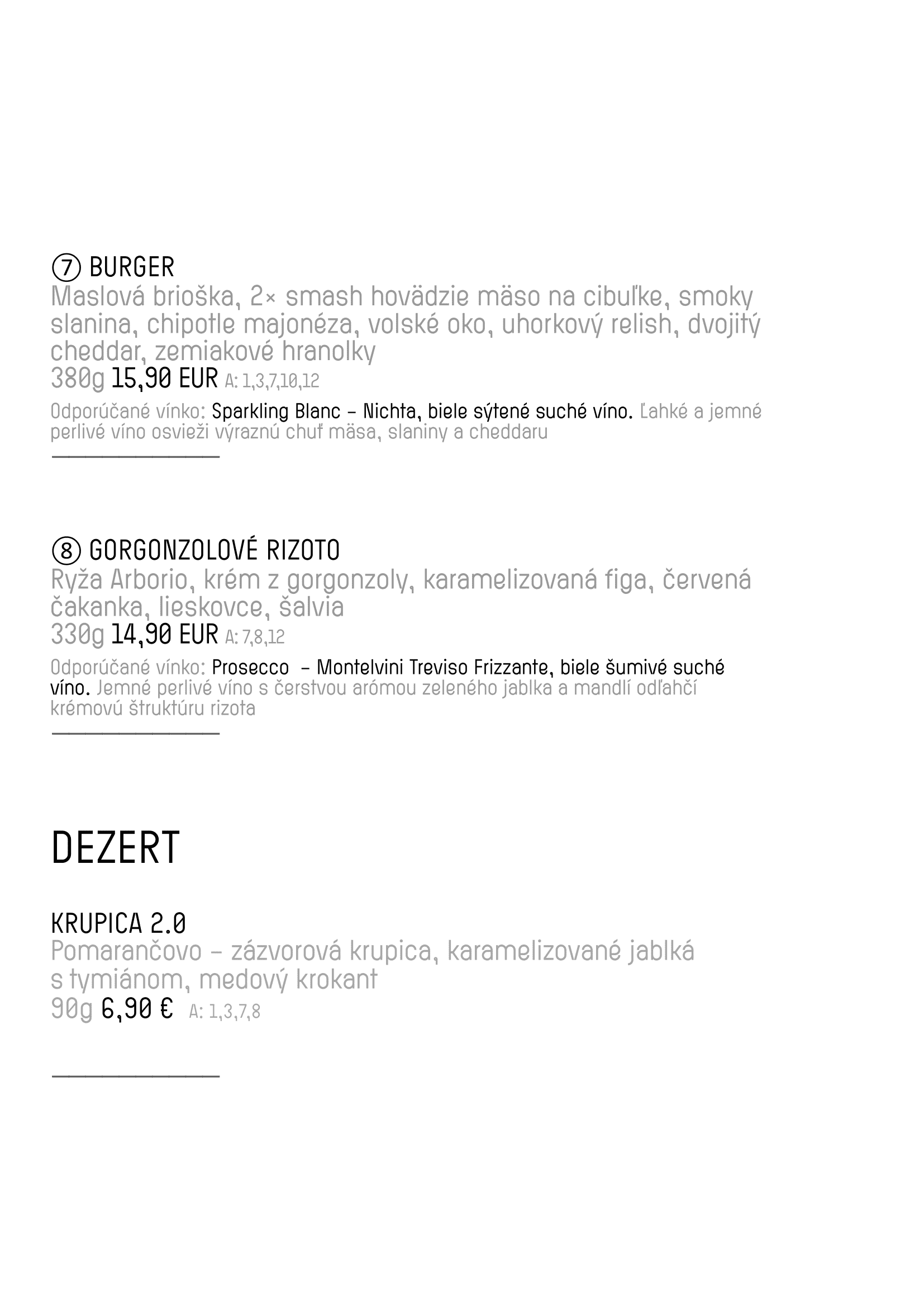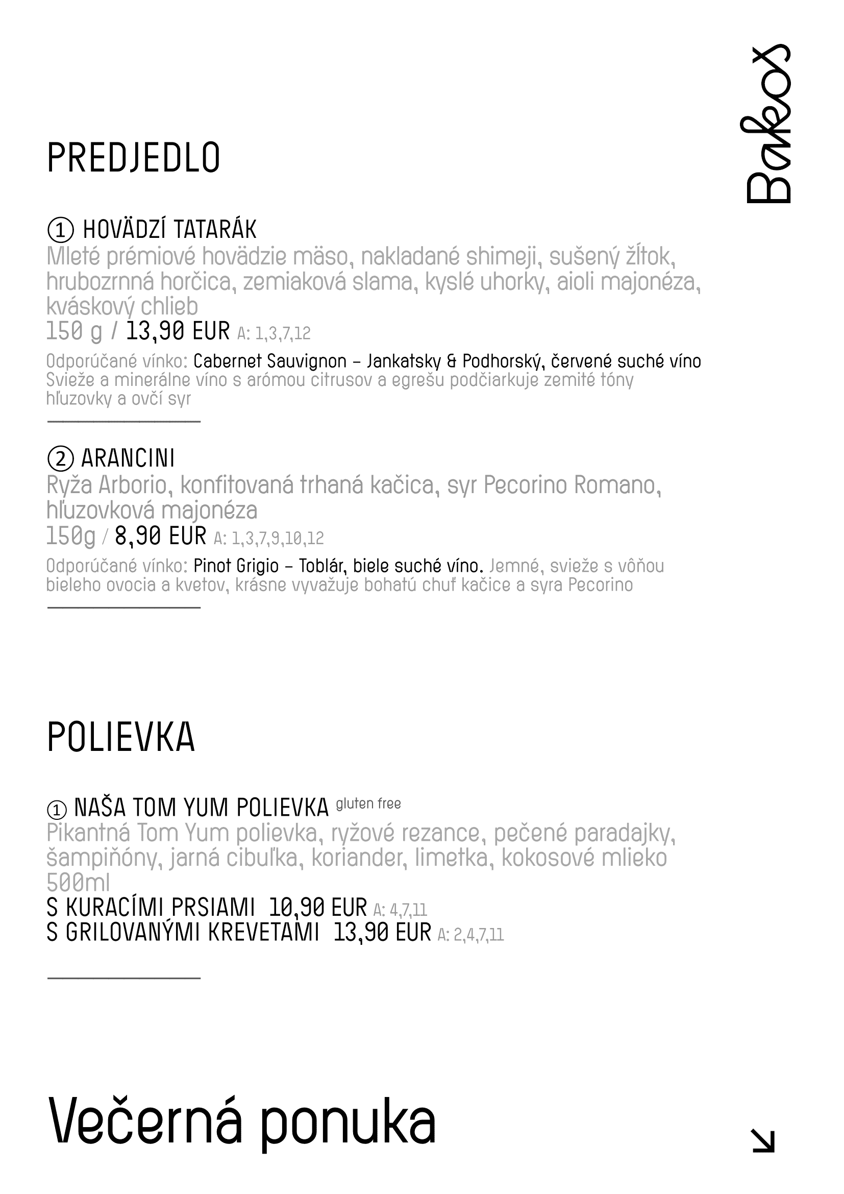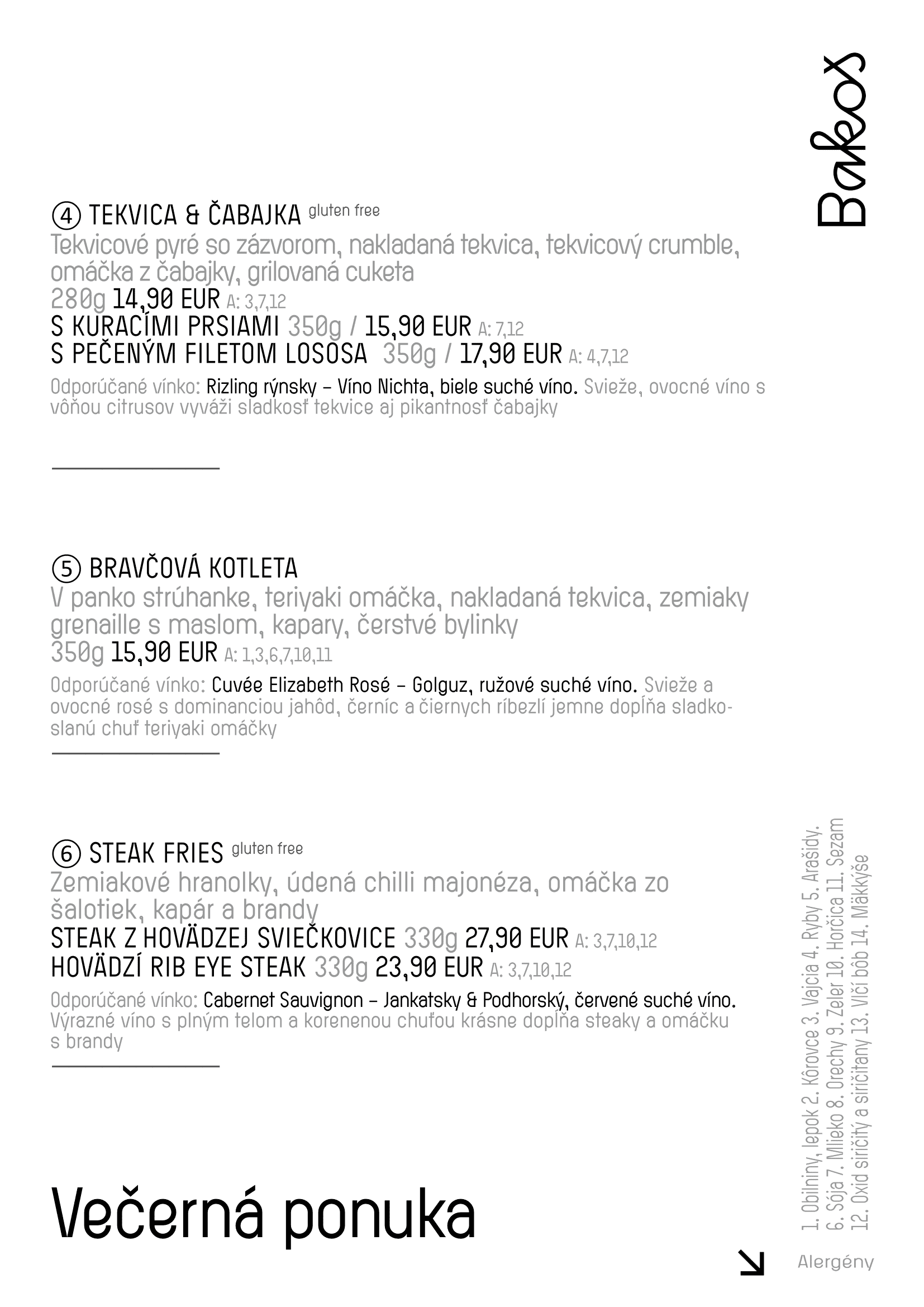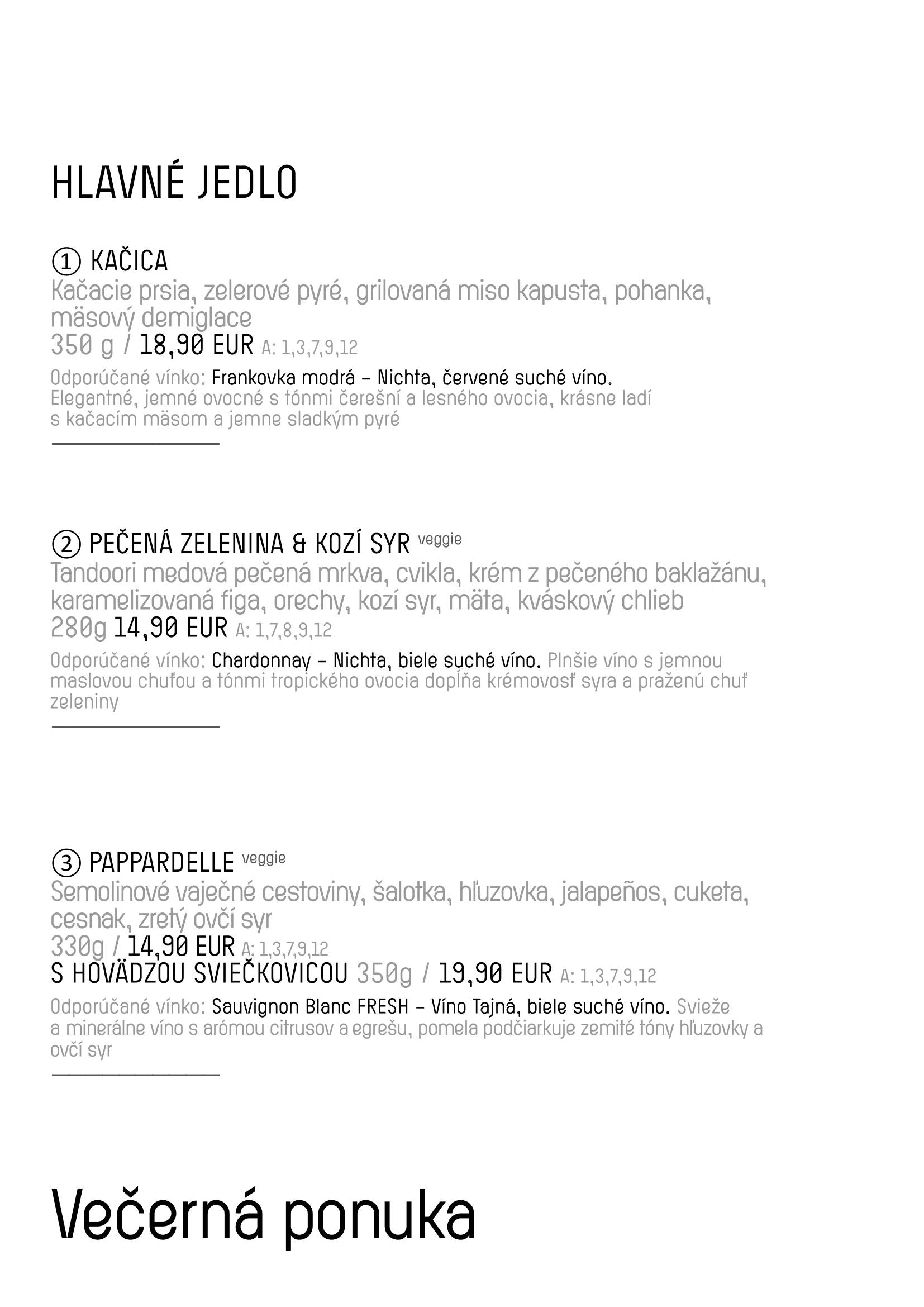 VEČERNÉ MENU SA PODÁVA V ČASE: